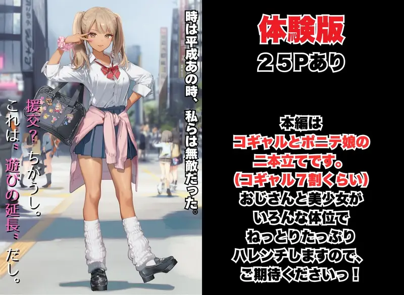 | ジャンル | 制服 ギャル フェラ 靴下 退廃・背徳・インモラル 売春・援交 陰毛・腋毛 褐色・日焼け 男性向け 成人向け わからせ 歳の差 |
