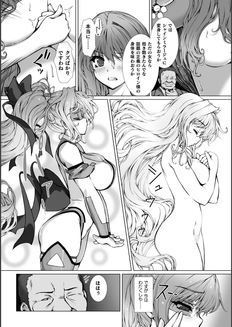 変身コスチュームでの「恋人プレイ」を強●され、怒りに震えながらも悦楽に抗えないシャインミラージュ。