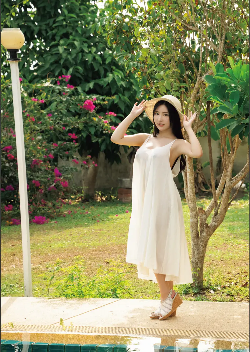 太陽の光を浴びて輝くような、健康的で生命力あふれる笑顔は見る者を惹きつけ、その透明感あふれる瞳は、時に少女のような純粋さを、時に大人の女性の色香を湛えています。